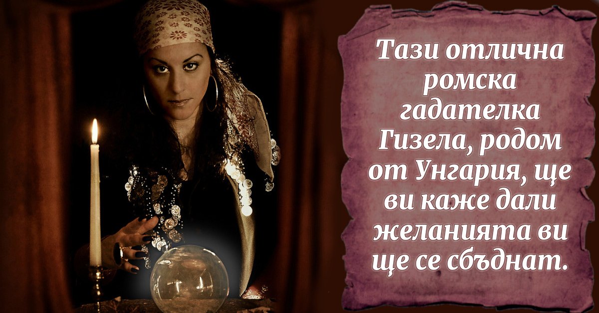 Тази отлична ромска гадателка Гизела, родом от Унгария, ще ви каже дали желанията ви ще се сбъднат.