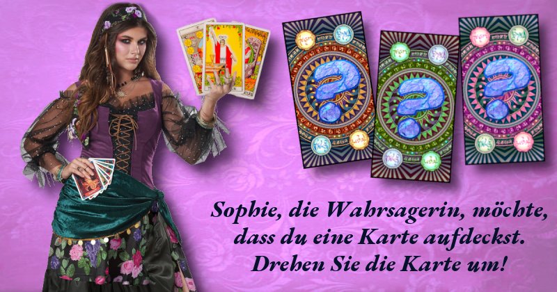 Sophie, die Wahrsagerin, möchte, dass du eine Karte aufdeckst. Drehen Sie die Karte um!