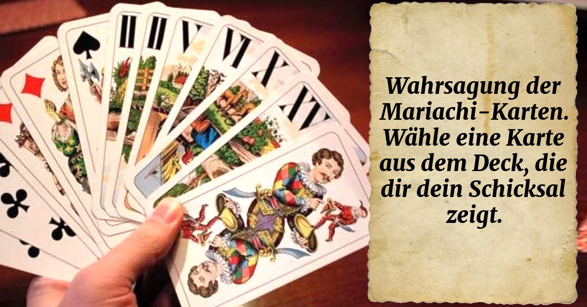 Wahrsagung der Mariachi-Karten. Wähle eine Karte aus dem Deck, die dir dein Schicksal zeigt.