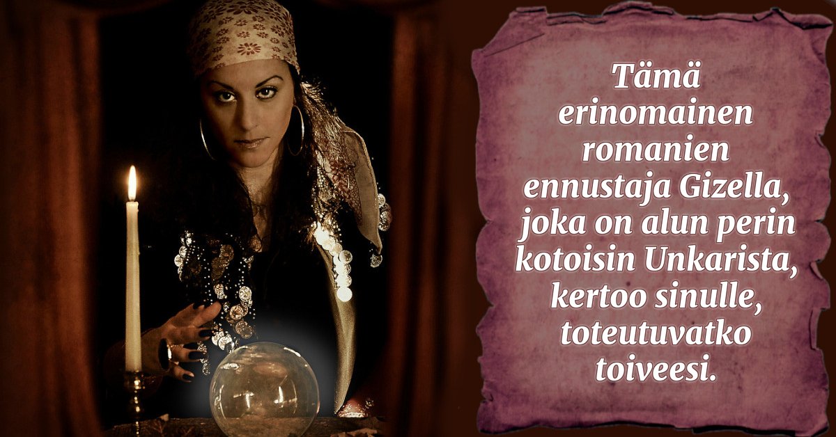 Tämä erinomainen romanien ennustaja Gizella, joka on alun perin kotoisin Unkarista, kertoo sinulle, toteutuvatko toiveesi.