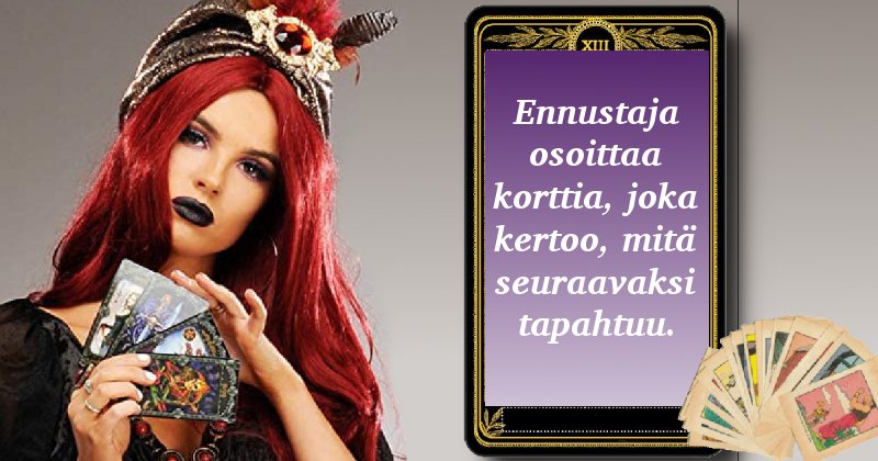 Ennustaja osoittaa korttia, joka kertoo, mitä seuraavaksi tapahtuu.