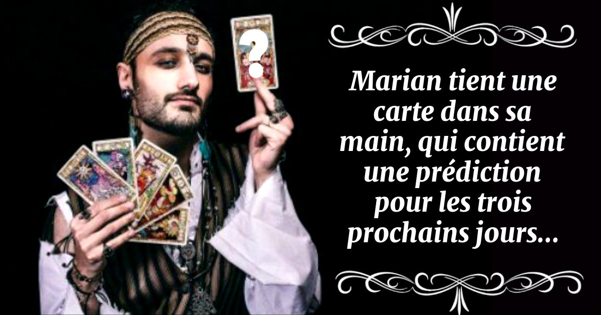 Marian tient une carte dans sa main, qui contient une prédiction pour les trois prochains jours...
