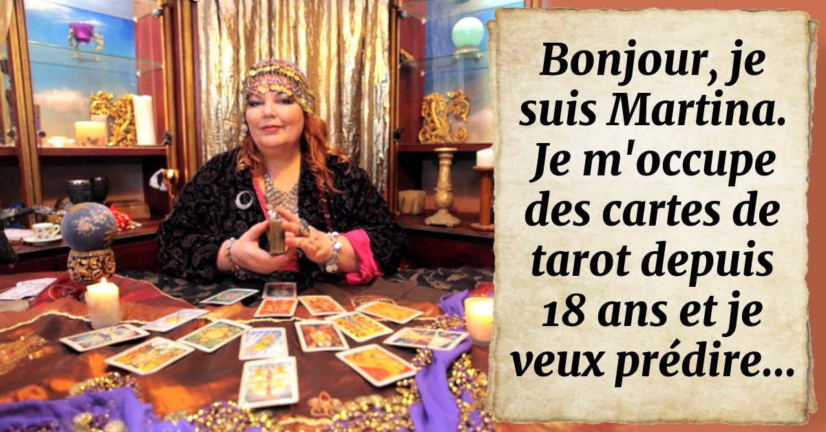 Bonjour, je suis Martina. Je m'occupe des cartes de tarot depuis 18 ans et je veux prédire...