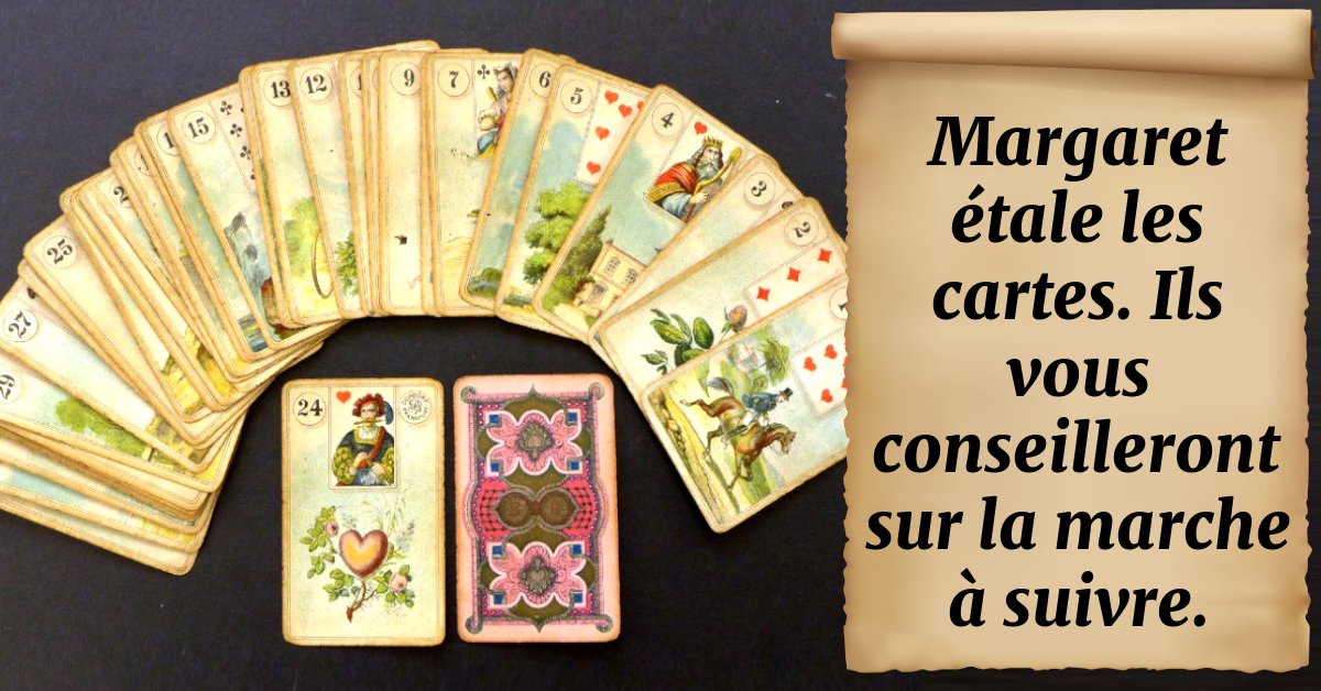 Margaret étale les cartes. Ils vous conseilleront sur la marche à suivre.