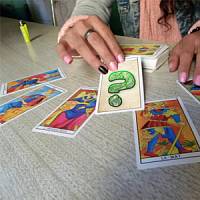 L'indovino Miriam ha preparato le carte della fortuna dei tarocchi. Sarai molto fortunato o forse non fortunato?