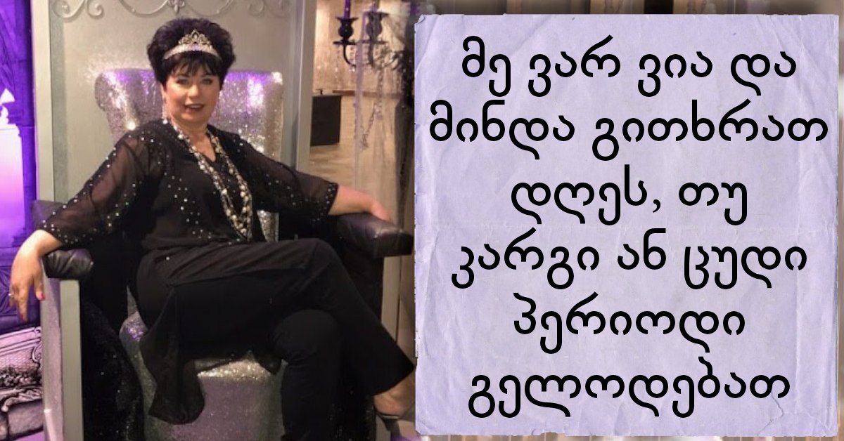 მე ვარ ვია და მინდა გითხრათ დღეს, თუ კარგი ან ცუდი პერიოდი გელოდებათ