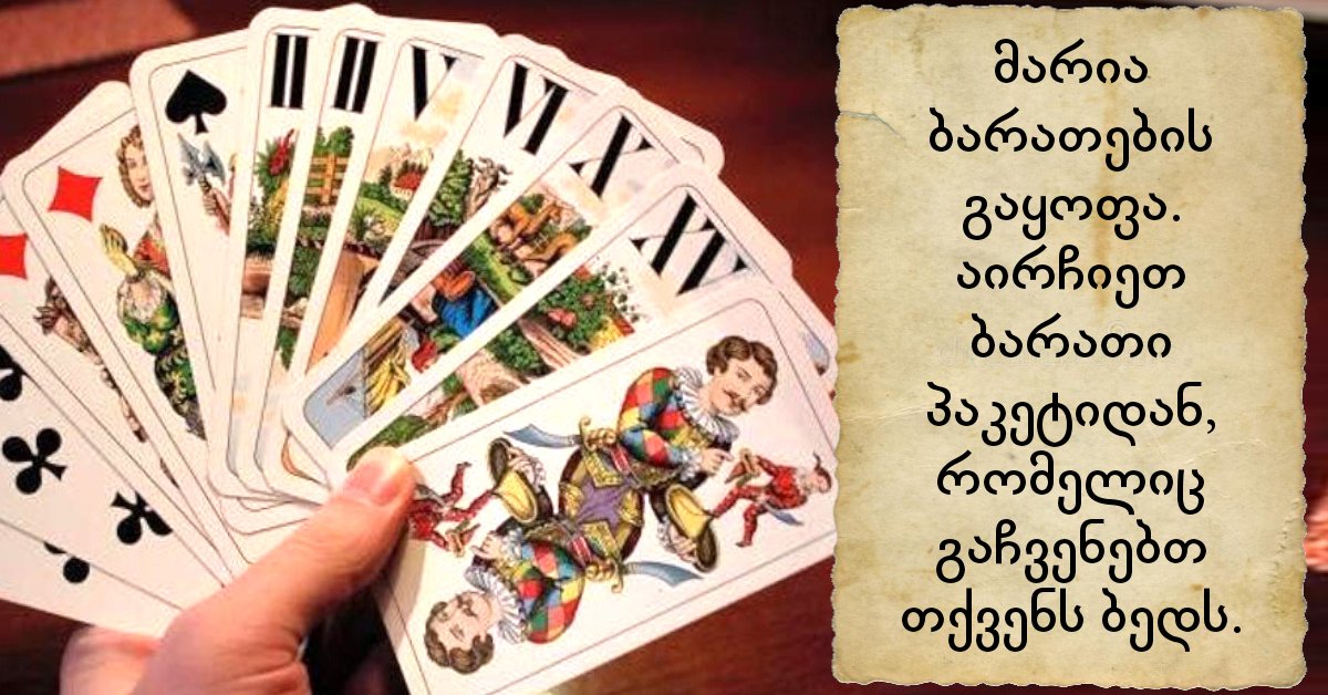 მარია ბარათების გაყოფა. აირჩიეთ ბარათი პაკეტიდან, რომელიც გაჩვენებთ თქვენს ბედს.