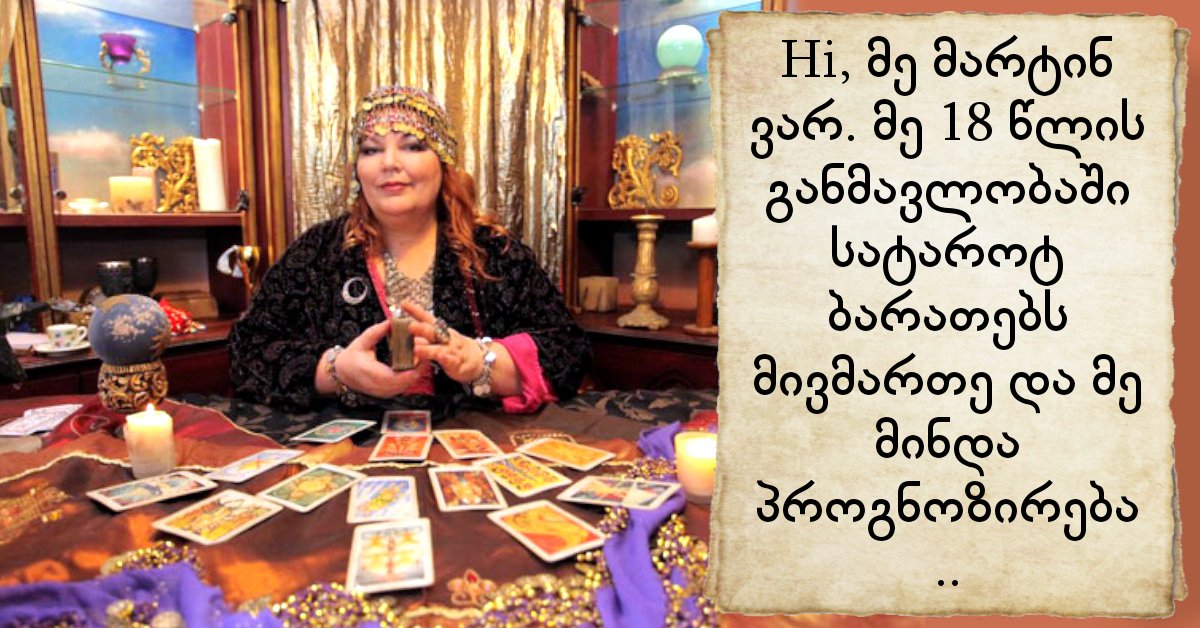 Hi, მე მარტინ ვარ. მე 18 წლის განმავლობაში სატაროტ ბარათებს მივმართე და მე მინდა პროგნოზირება ..