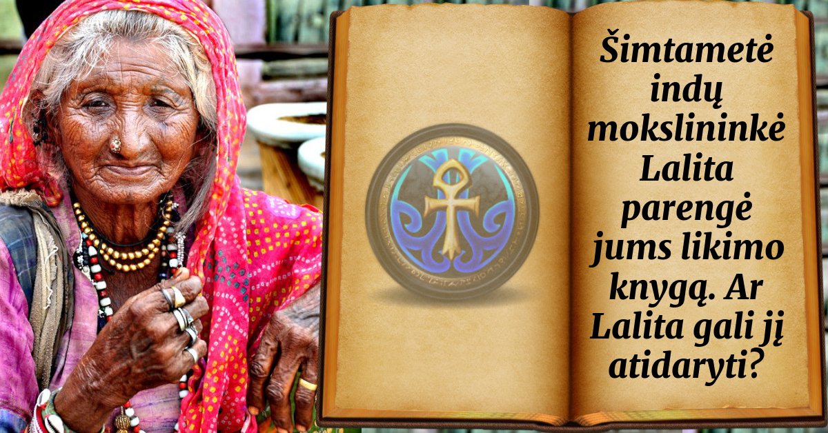 Šimtametė indų mokslininkė Lalita parengė jums likimo knygą. Ar Lalita gali jį atidaryti?