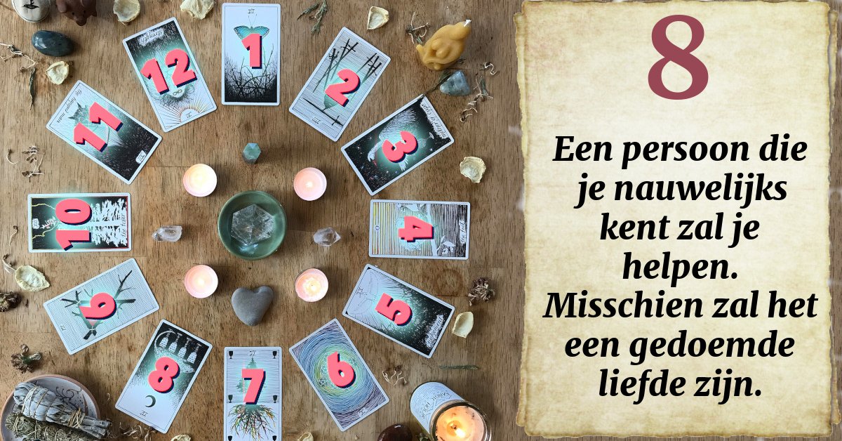 Heb een kaart klaarliggen voor volgende maand. Deze kaart zal je vertellen hoe je lot verder zal gaan!
