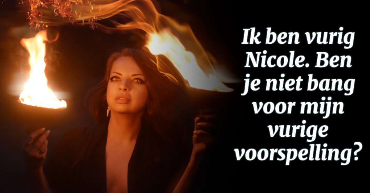 Ik ben vurig Nicole. Ben je niet bang voor mijn vurige voorspelling?