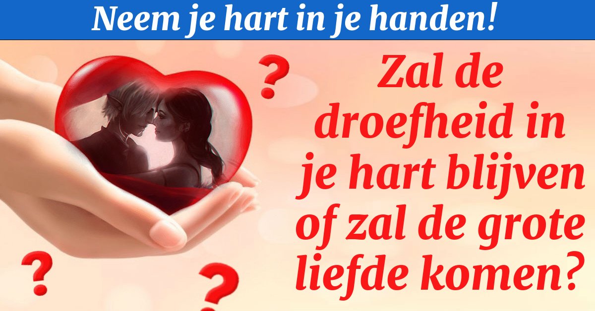 Neem je hart in je handen! Zal er verdriet of grote liefde in zitten?