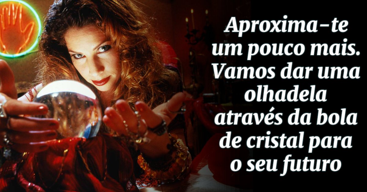 Aproxima-te um pouco mais. Vamos dar uma olhadela através da bola de cristal para o seu futuro