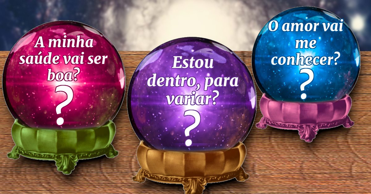 3 bolas mágicas. Agite-os para descobrir as respostas a perguntas importantes.
