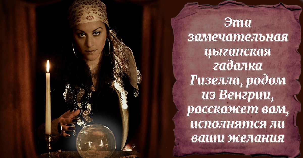 Эта замечательная цыганская гадалка Гизелла, родом из Венгрии, расскажет вам, исполнятся ли ваши желания