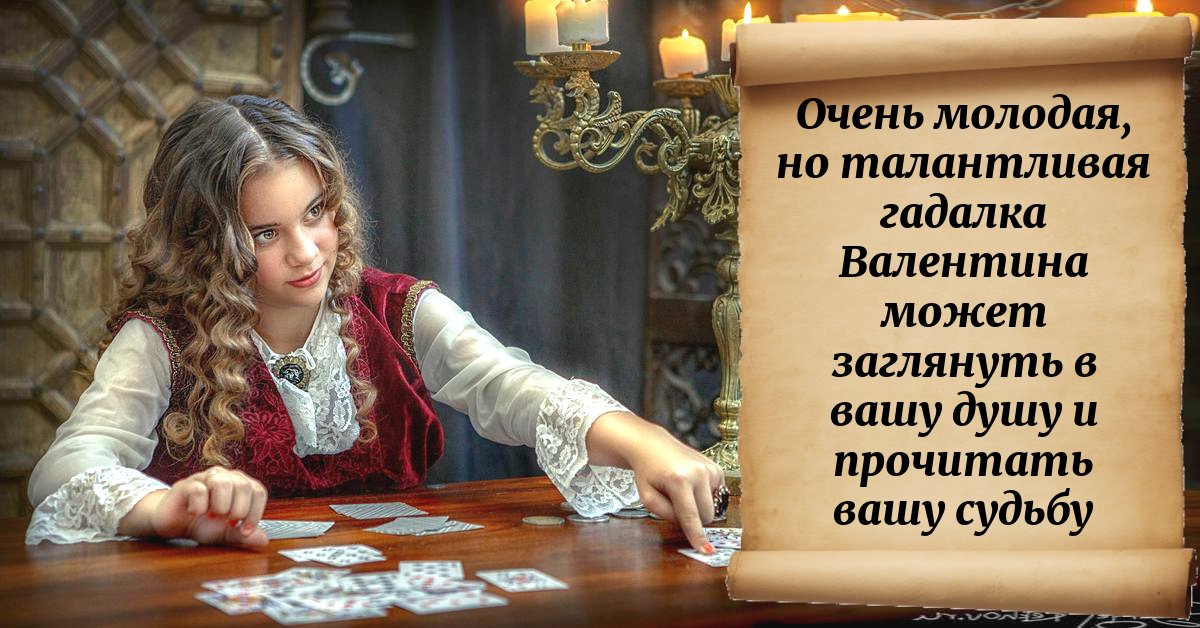Очень молодая, но талантливая гадалка Валентина может заглянуть в вашу душу и прочитать вашу судьбу