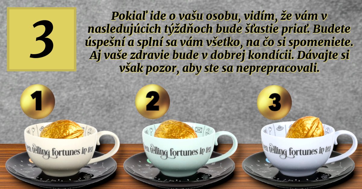 V každom pohári je jeden zlatý oriešok a vy si starostlivo vyberte len jeden z nich!