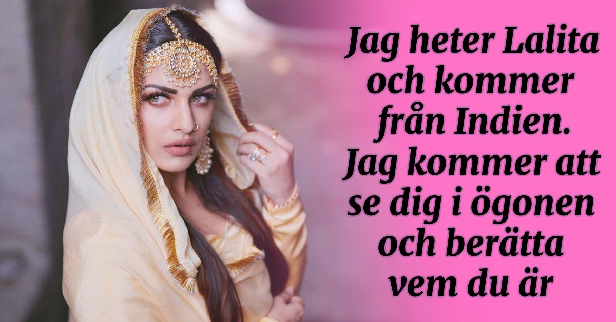 Jag heter Lalita och kommer från Indien. Jag kommer att se dig i ögonen och berätta vem du är