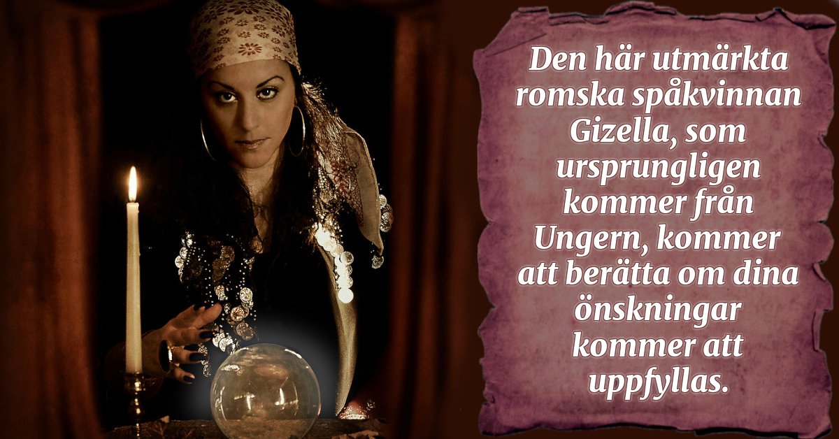 Den här utmärkta romska spåkvinnan Gizella, som ursprungligen kommer från Ungern, kommer att berätta om dina önskningar kommer att uppfyllas.